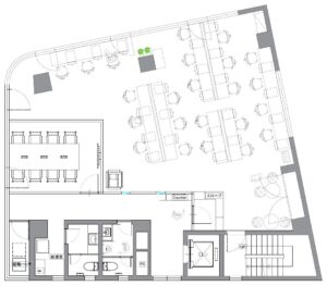 ・広々としたワンフロアの執務室では自由なレイアウトが可能