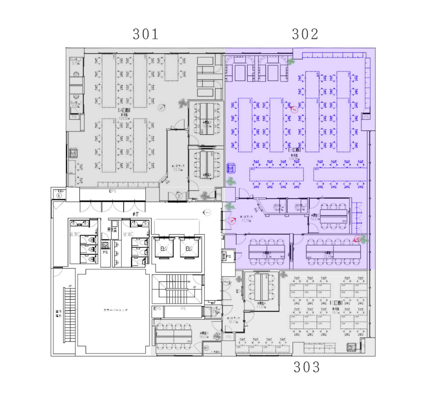 組織の成長フェーズにある企業の本社機能にも対応できる規模感です。