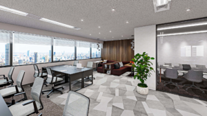 当オフィスは、フロア内で最もゆとりある区画として設計されています。大人数での会議にも対応できる会議室を含む3室を備え、頻繁に来客対応が発生する企業に最適です。