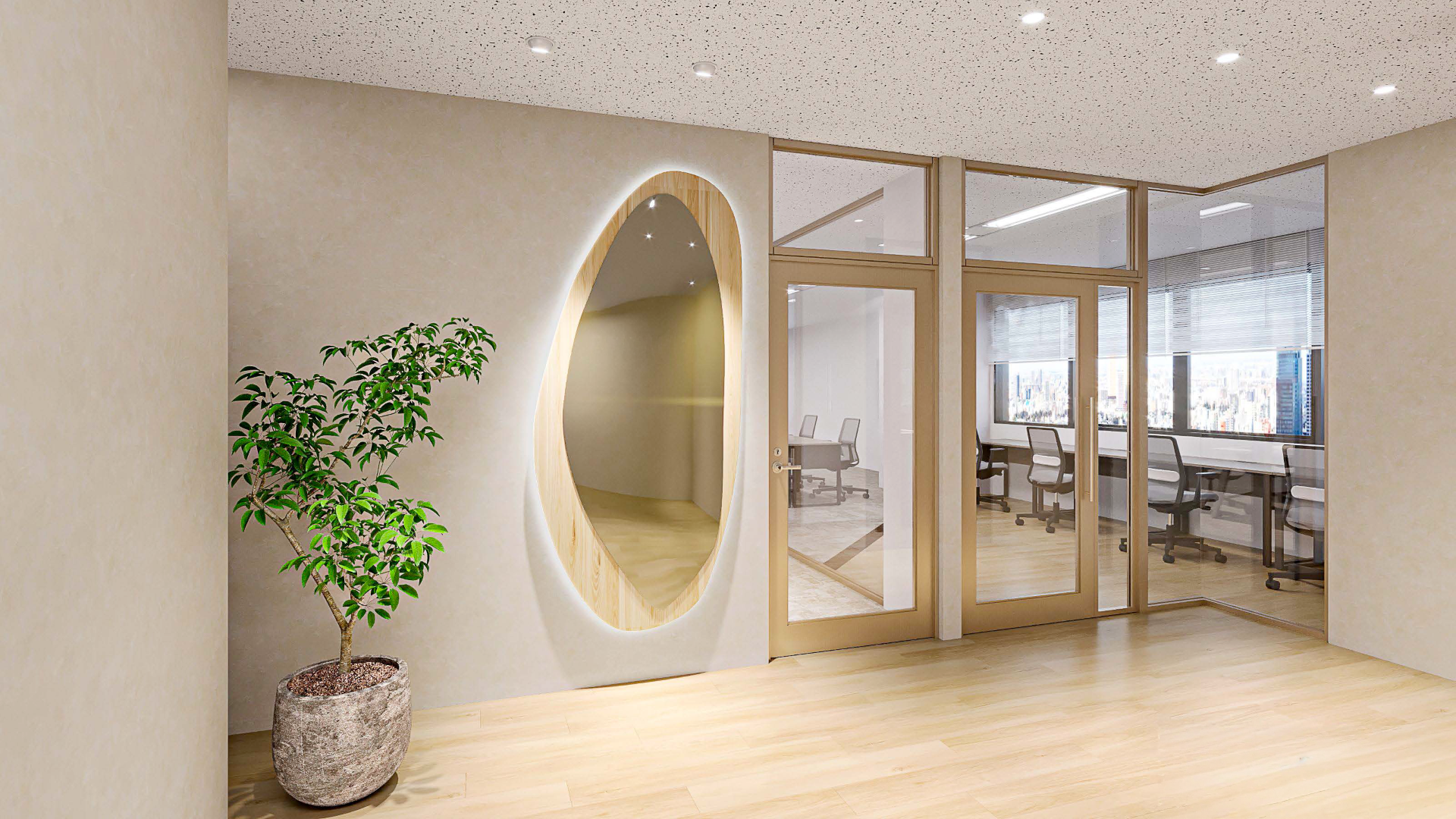 明るく開放的なナチュラルデザイン、心地よさと機能性を両立したセットアップオフィス。詳細は以下をご覧ください。