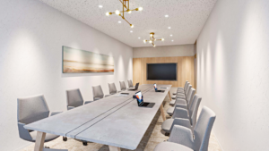 大人数での会議や研修に対応できる会議室を含む3室を備え、アートや上質な照明で彩られた空間は商談の場としても高い評価を得ています。
