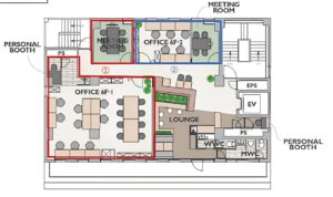 グリーンを配した開放的なラウンジ、モニター付き会議室、集中作業に最適なフォンブースを完備。家具付きで即入居可能な当オフィスの魅力を、詳細は以下をご覧ください。