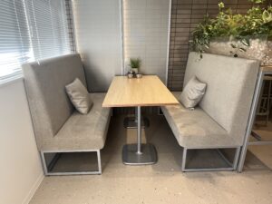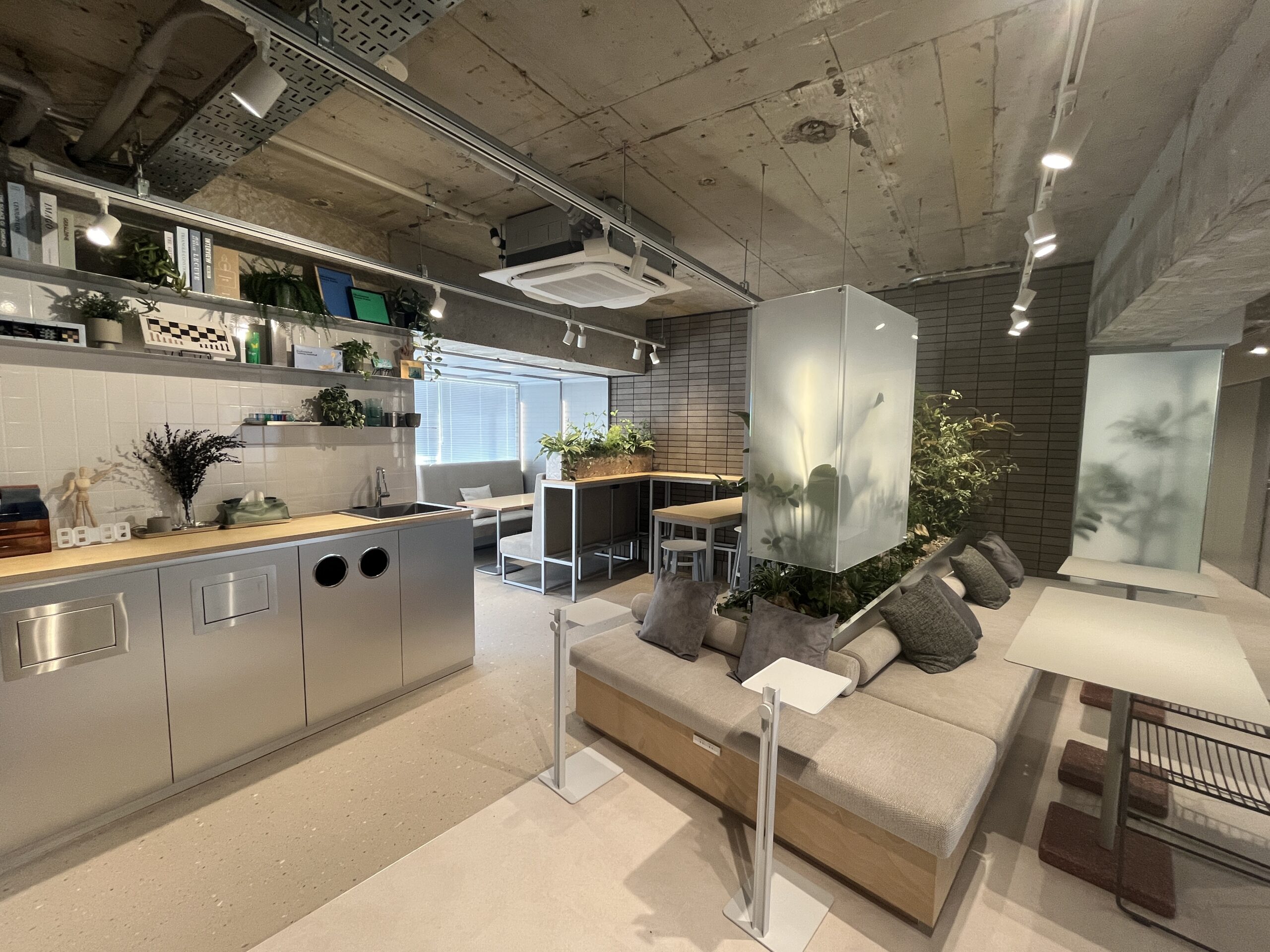 グリーンを取り入れたラウンジは、日々の業務の合間にリフレッシュできる空間として、従業員満足度の向上にも貢献します。