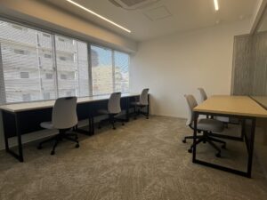 執務スペースは窓面が広く確保されており、自然光がたっぷり入る明るい空間で日々の業務に集中できます。