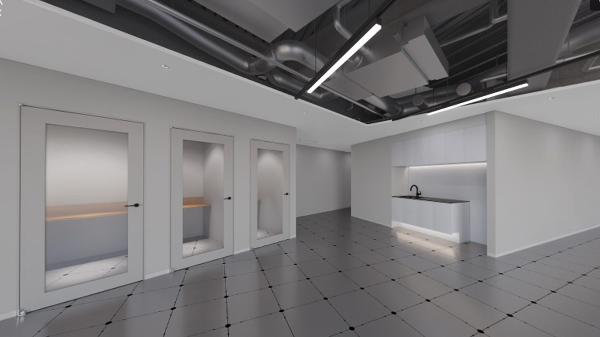 室内は効率的な空間設計で、独立性の高いワークエリアを確保しつつ、会議室やラウンジも充実。最上階だからこそ実現できる、特別なオフィス体験をご提供します。