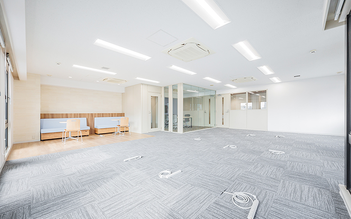 2024年7月に完成したばかりの清潔感あふれる内装が魅力です。広々としたオープンスペースには、明るい自然光が差し込み、働く方々の生産性を高めます。