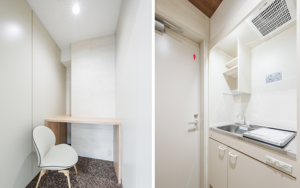 - 6名用会議室、フォンブース、ラウンジスペース完備
