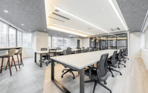 デスクや椅子があらかじめ配置されたセットアップ形式のため、開設コストを抑えつつスムーズに業務を開始できます 。ガラス張りの会議室や集中できる個室ブース、リラックスできるラウンジなど、用途に合わせて使い分けられる多様なスペースが揃っているのが最大の魅力です 。