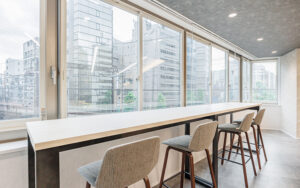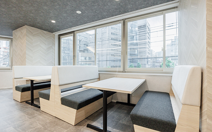 - 窓際に面したカウンター席やファミレス型の打ち合わせブース