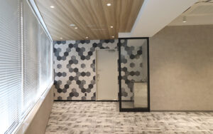 • 落ち着きのある木目調の天井とデザイン性の高いフロアタイル