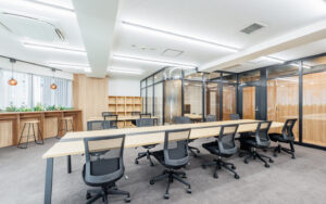 都心の中枢にありながら、木の温もりとモダンなデザインが調和した上質なワークスペースを提供します。