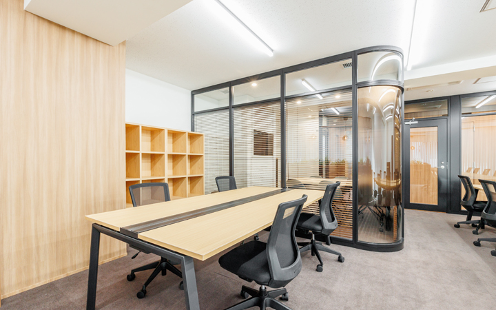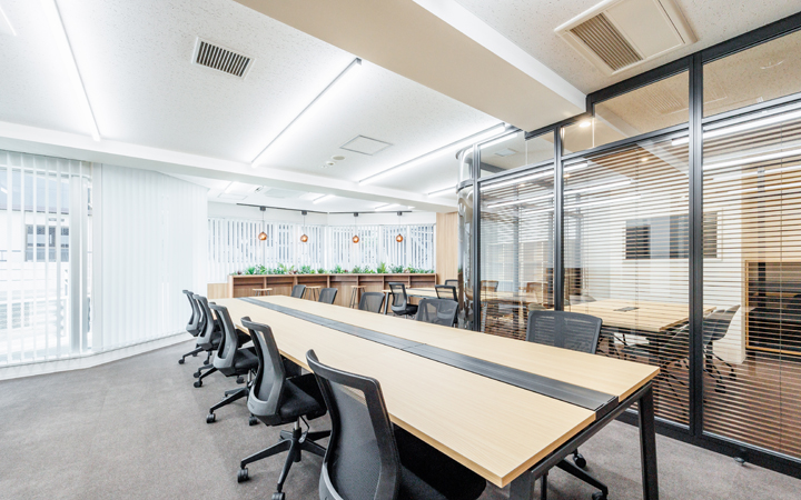 • 社内会議や来客対応に最適なガラス仕切りの会議室完備