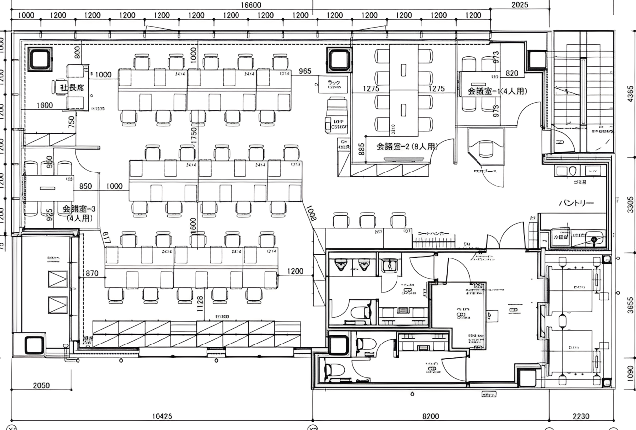 複数の会議室は規模や用途に応じて使い分けが可能で、日常のミーティングから重要な商談まで幅広く対応できます。パントリー設備も完備されており、従業員の休憩時間も快適にお過ごしいただけます。
