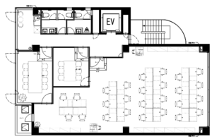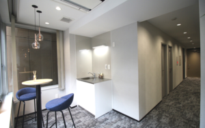 内装は機能的なセットアップ仕様となっており、デスクやチェアなどの什器があらかじめ用意されているため、入居当日からスムーズに業務を開始できます。
