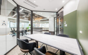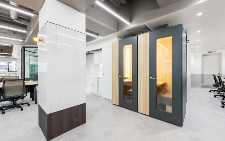室内には会議室に加え、Web会議に最適なテレカンブースも設置されており、現代のワークスタイルに即座に対応可能 。