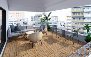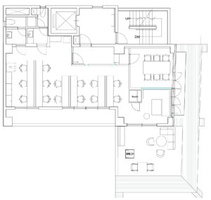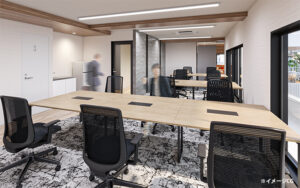 執務スペースは機能性を重視したレイアウトで、集中しやすい環境を実現しています。開放的なテラスラウンジは、従業員のリフレッシュや創造的な対話の場として活用でき、働きやすさと生産性の両立をサポートします。