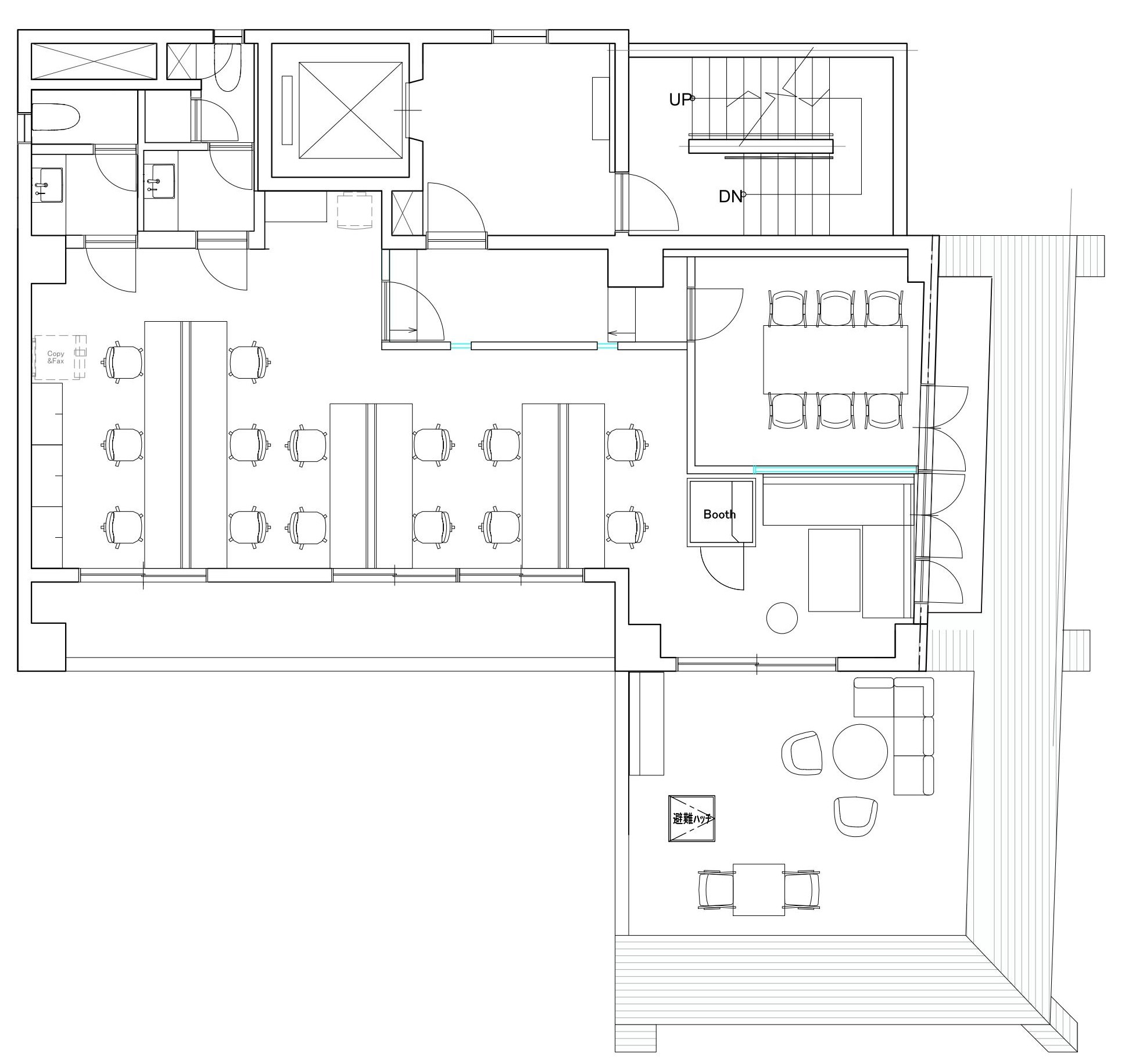 - 開放感あふれるテラスラウンジで気分転換やカジュアルミーティングに最適