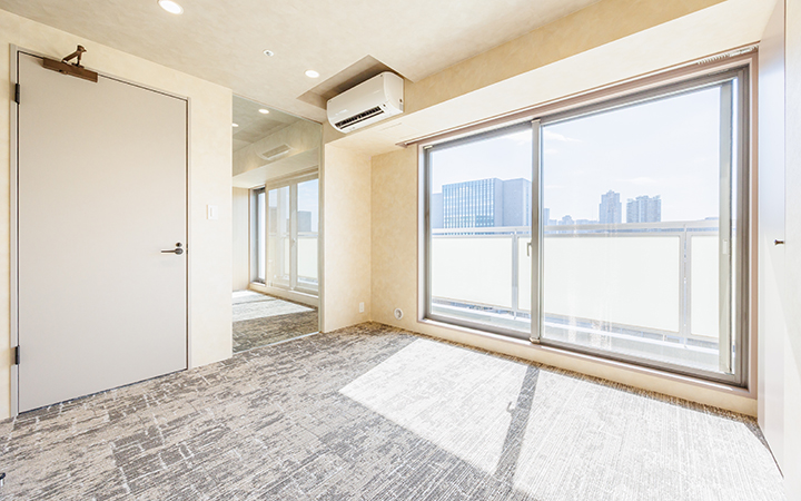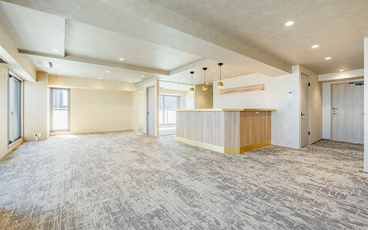 洗練された家具付きの内装と、最上階ならではの開放的な眺望が融合した上質なワークスペースです。