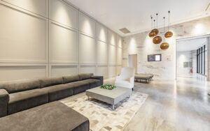 • 来訪者を優しく迎え入れる重厚なエントランスロビー