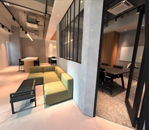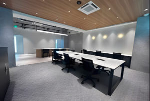 執務室に9席分の執務席が設置されていますが、もし不足してしまう場合には6名テーブルやソファなども活用するといいでしょう。ハイブリッドワークを採用する企業の場合、一時的にオフィスの滞在人数が増えることがありますが、そのような場合にも対応できそうです。