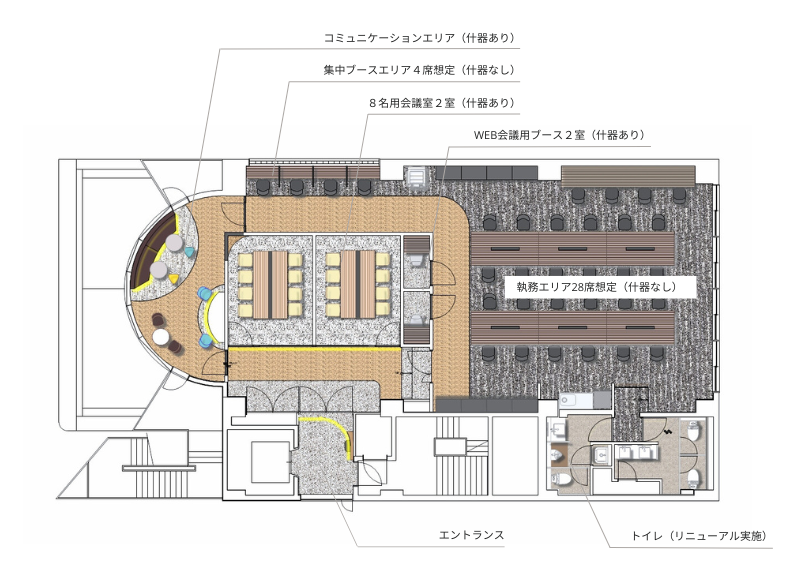 - 部署を越えた交流を促す回遊型の動線設計を採用