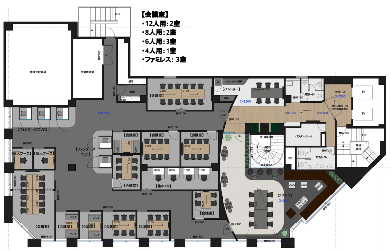 また、専有ラウンジや会議室は、採用活動や重要な商談において、自社のオフィスとは異なるプレミアム空間として活用でき、企業の魅力を高める重要な要素となります。