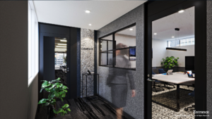 最寄り駅から徒歩数分のアクセスの良さが魅力のオフィスです。ガラス面の多い外観は視認性が高く、来訪者に洗練された印象を与えます。