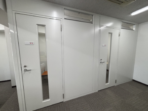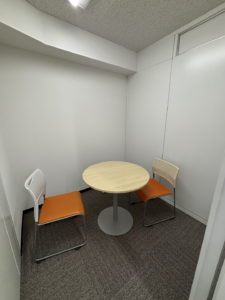 6名用の会議室は商談や社内ミーティングに活用でき、集中ブースは個人作業やWeb会議に最適です。また、コンパクトな打ち合わせスペースもあり、ちょっとした相談にも対応できます。