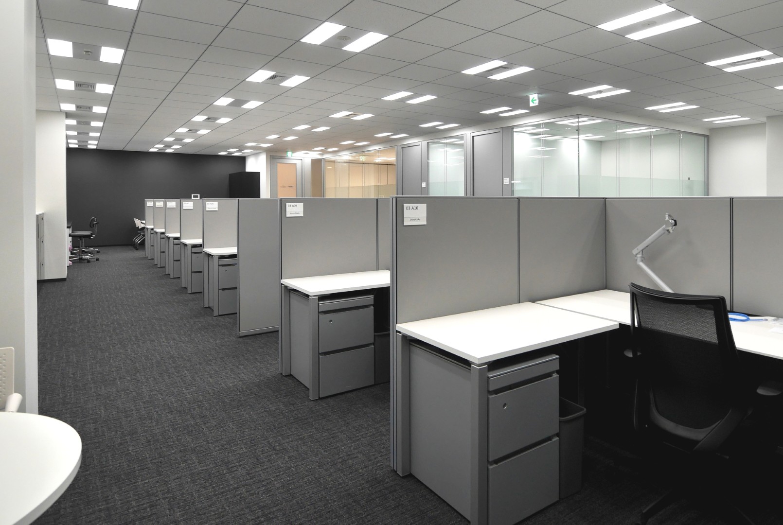 オープンオフィスエリアにはパーテーションで適度に区切られたワークスペースがあり、チーム間のコミュニケーションを保ちながらもプライバシーに配慮した設計となっています。