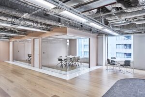 ガラス張りの会議室が3室完備されており、様々な規模のミーティングに対応可能です。