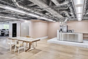 露出天井のインダストリアルな雰囲気が、クリエイティブな空間を演出します。