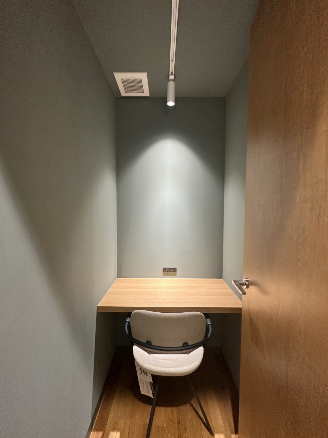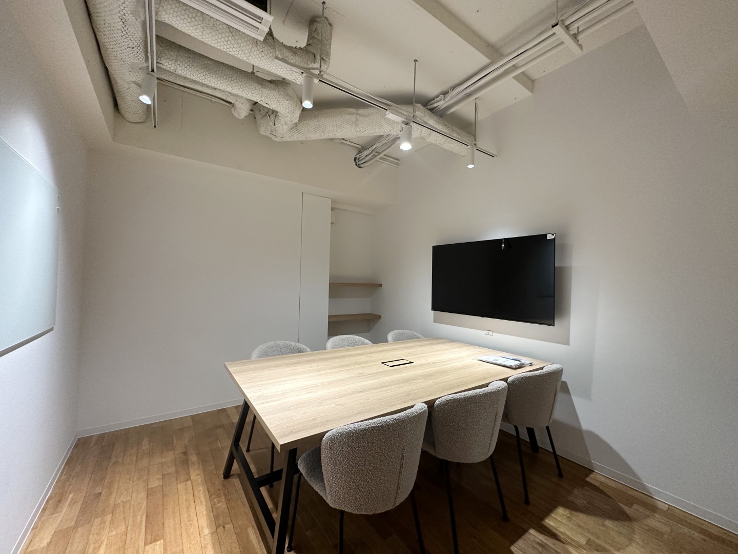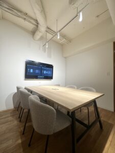 会議室には大型モニターと洗練されたテーブル・チェアを完備し、来客対応も安心です。フォンブースは集中作業や Web会議に最適で、オープンスペースとの使い分けができます。