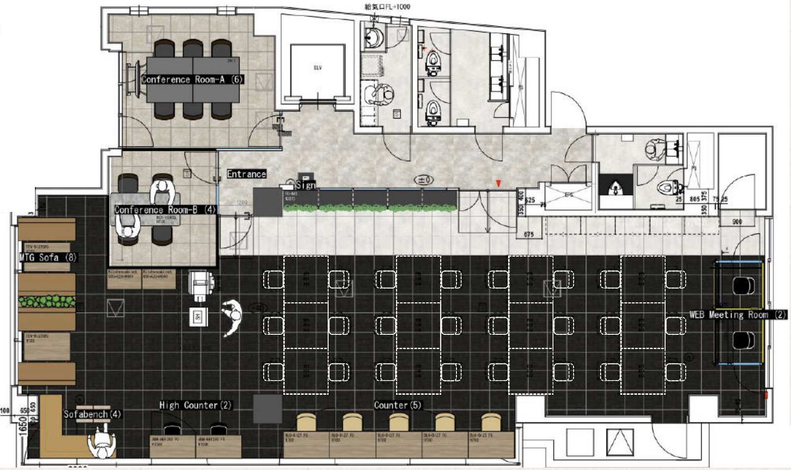また、ソファベンチを配したリラックスエリアでは、カジュアルなコミュニケーションや気分転換にもご活用いただけます。