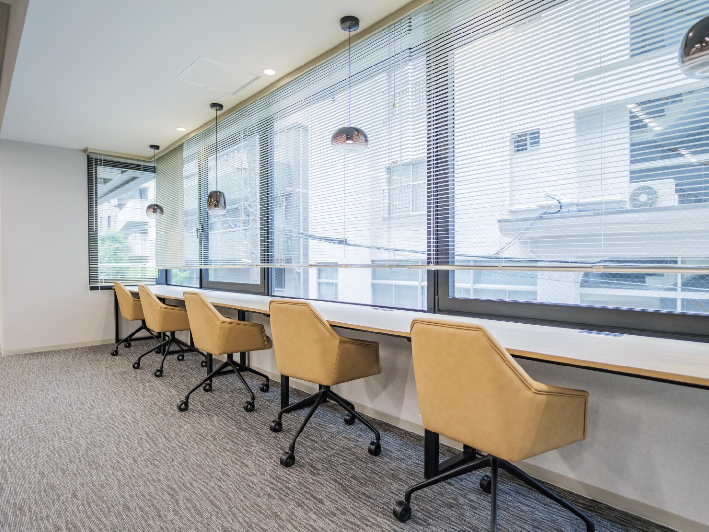 窓際にはカウンター席も設けられ、集中作業やスタンディングワークなど、働き方の選択肢が広がるオフィスです。