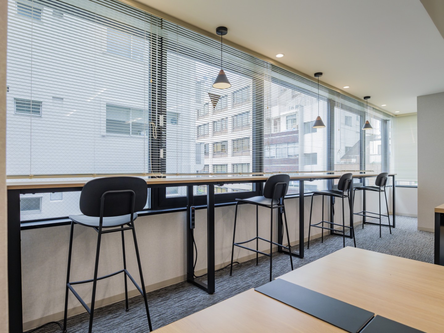 窓際のカウンター席やハイカウンターでは、気分を変えての作業やスタンディングワークも可能。多彩なワークスペースが、チームの生産性向上をサポートします。