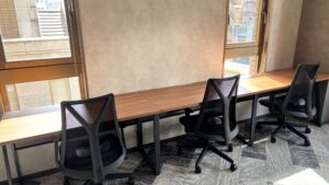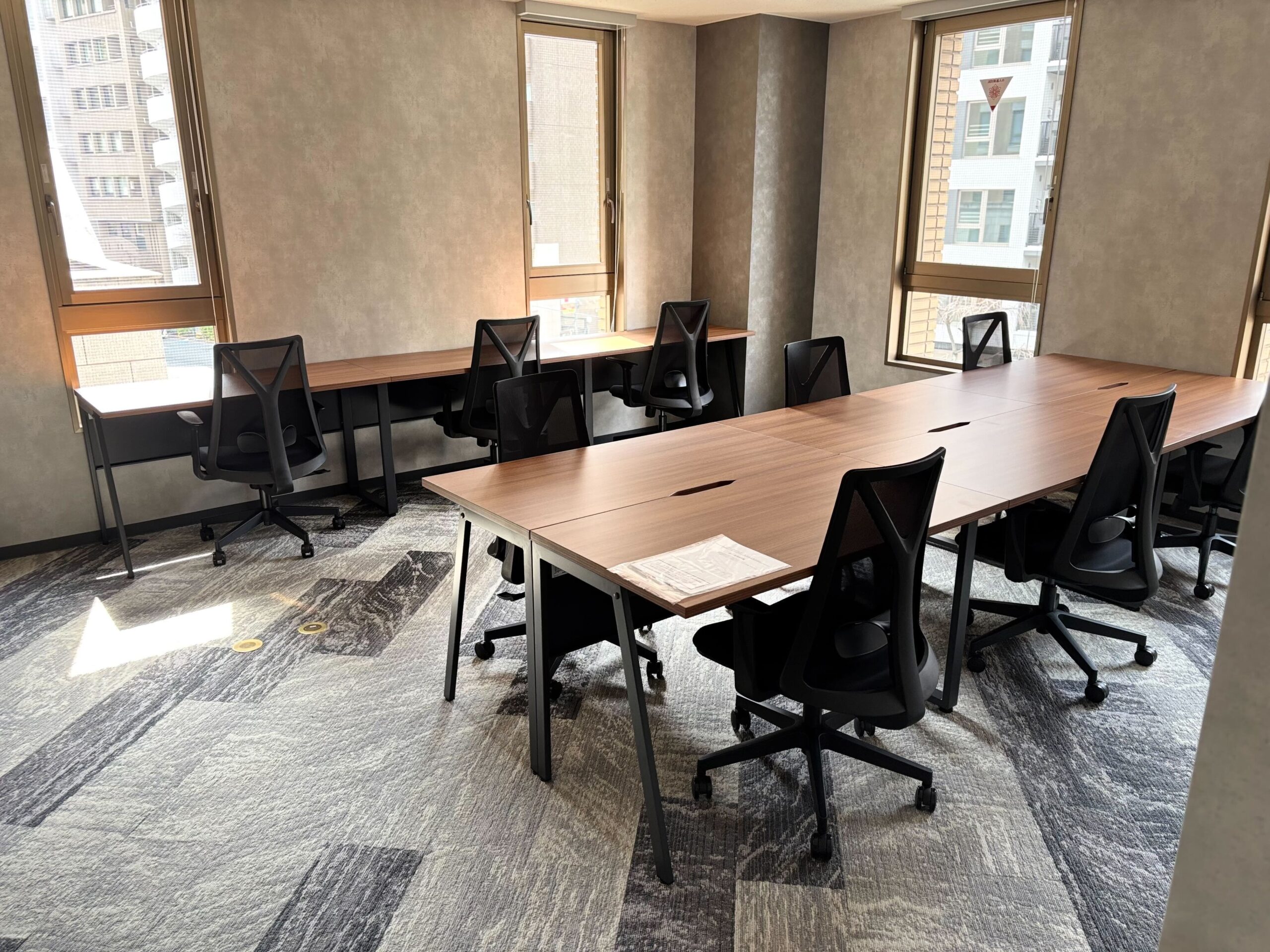 大きな窓からは自然光が差し込み、明るく開放的なワークスペースを実現しています。