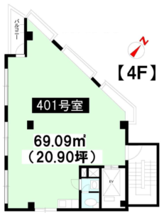 1フロア1テナントの構造により、他のテナントを気にすることなく業務に集中できる環境が整っています。バルコニーやミニキッチンも完備されているため、も備えており、ちょっとした気分転換やリフレッシュにも活用できます。