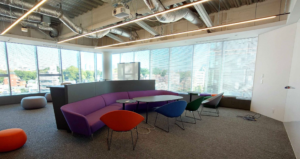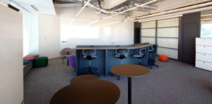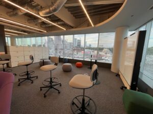 • カラフルな家具で彩られたラウンジスペースがクリエイティブな発想を促進