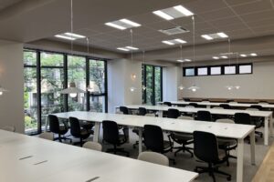 広々とした執務空間は、快適な作業環境を提供し、生産性の向上に寄与します。また、フレキシブルなレイアウト対応により、組織の変化に柔軟に対応できる点も、成長企業にとって大きな魅力となります。
