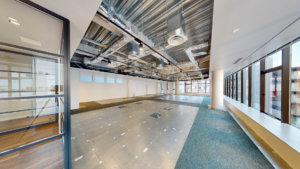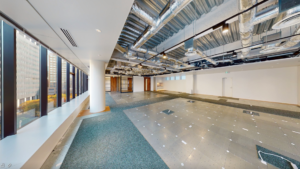 本物件の最大の魅力は、天井のスケルトンデザインによる圧倒的な開放感です。配管や構造がそのまま見える仕様は、モダンで洗練された印象を与えるとともに、空間全体に広がりを感じさせます。来訪されるお客様や取引先からも好印象を持たれやすく、企業のイメージアップにも貢献します。大きな窓が設けられており自然光が豊富に差し込むため、日中は照明に頼らず快適に作業できる環境です。