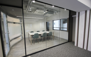 • ガラス張りの会議室やソファスペースを完備