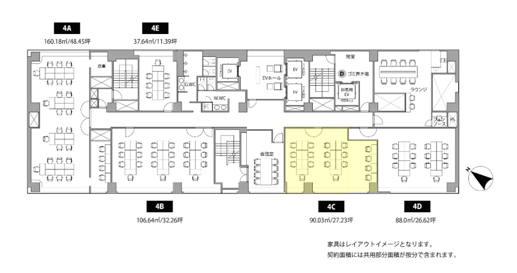敷金ゼロの好条件に加え、共用会議室やラウンジも完備しております。詳細は以下をご覧ください。