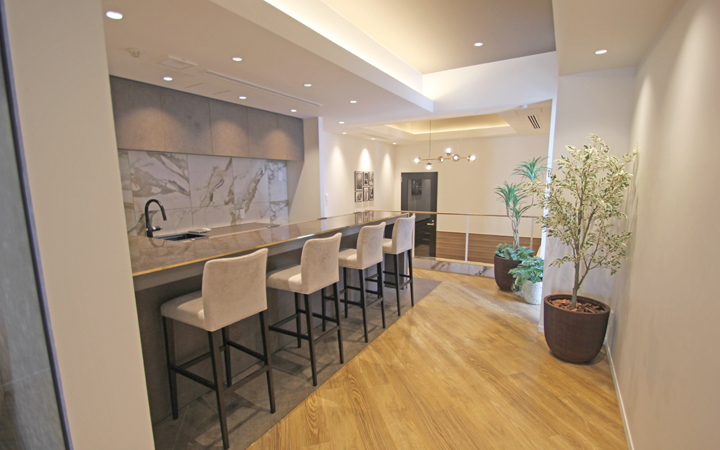 • マーブル調カウンターバーで充実のリフレッシュ環境