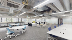 - スケルトン天井でデザイン性と開放感を両立した空間
