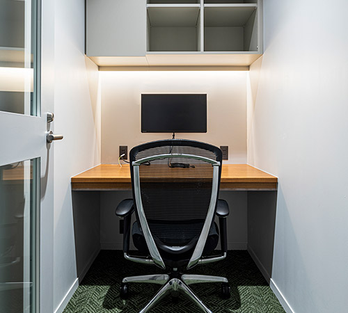 洗練されたインテリアデザインは来訪者に印象的な第一印象を与え、企業イメージの向上に大きく貢献します。個室オフィスには大型モニターを完備し、リモートワークやオンライン会議に最適な環境を整えています。