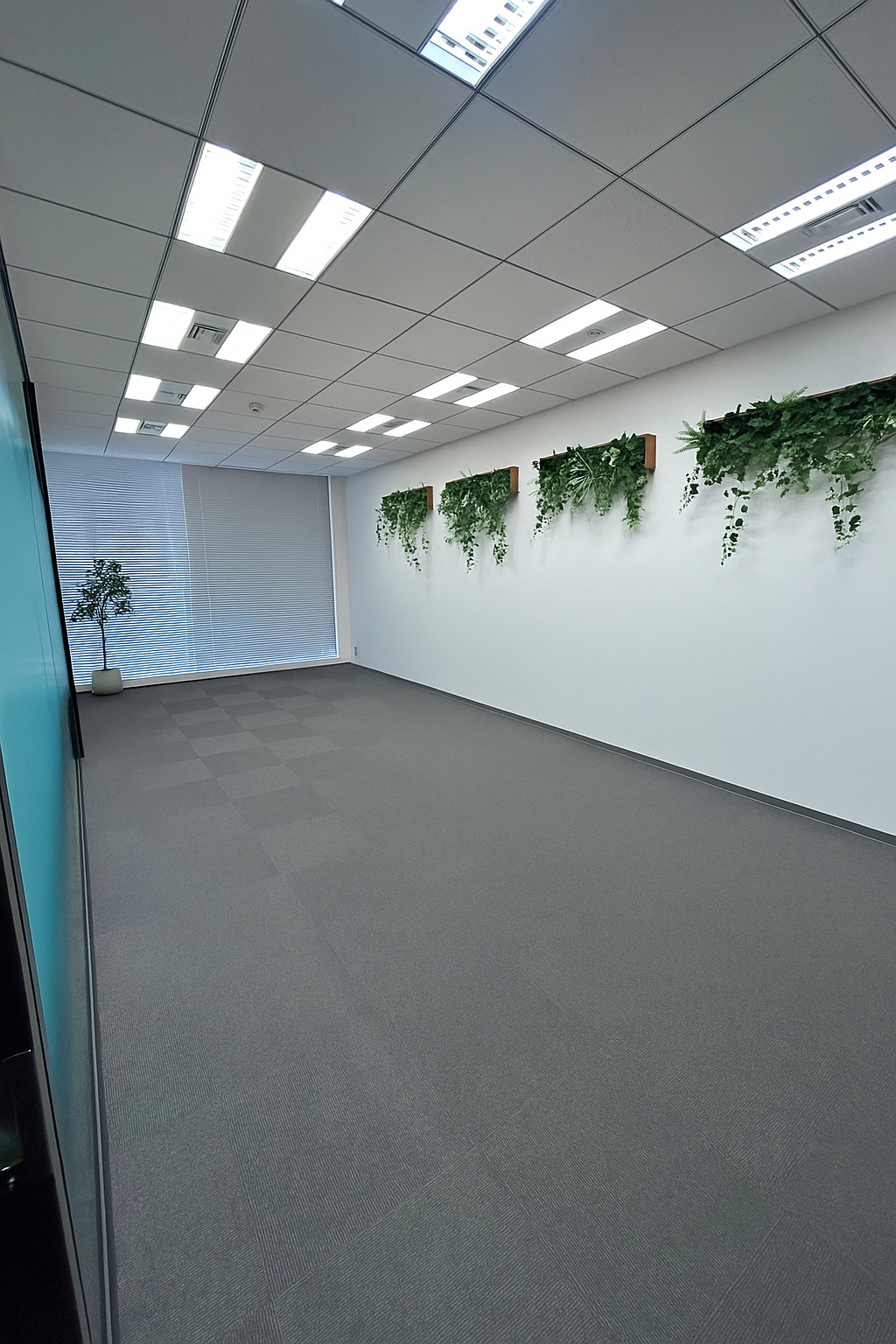 内装は白を基調としたクリーンな空間に、壁面グリーンがアクセントとなり、働く方々に癒しと活力を提供します。
