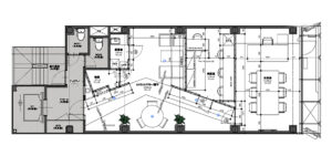 - 会議室やガラス張り仕切りなど柔軟なゾーニングが可能